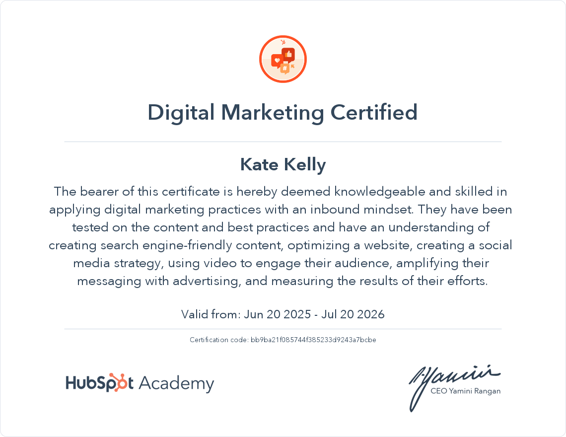 Digital Marketing Certified, HubSpot Academy