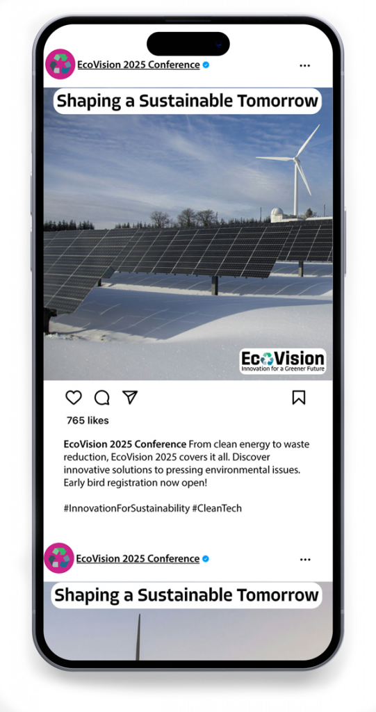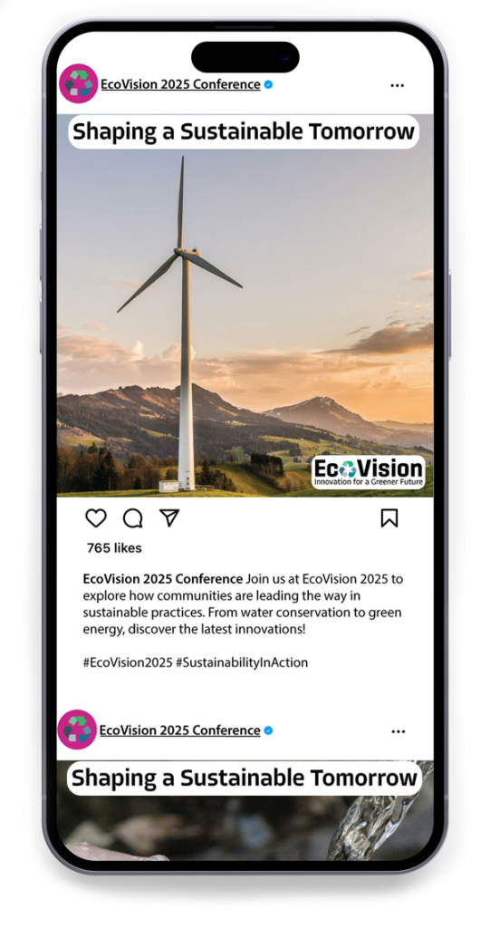 EcoVision contracted me to create a cohesive and engaging visual identity that effectively communicated the conference’s mission of promoting sustainable practices. This included designing a logo, promotional materials, signage, and digital assets that embodied the themes of sustainability, collaboration, and forward-thinking solutions.
