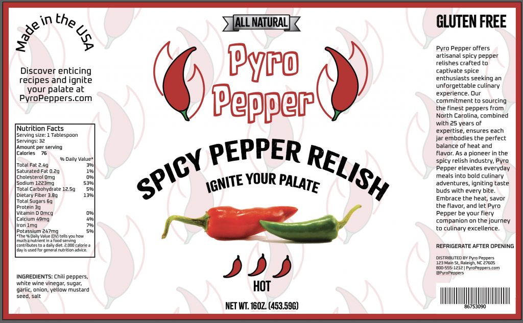 NC Pepper, Inc. hired me to develop a complete product identity for a spicy pepper relish, requiring a comprehensive approach to brand development. The project entailed creating an original product name, designing a distinctive logo, crafting a compelling label, and developing eye-catching packaging. By managing each element of the brand’s visual identity, I aimed to create a cohesive and appealing presentation that would attract potential consumers and communicate the product’s unique flavor profile.