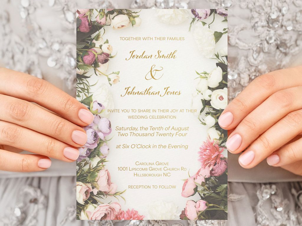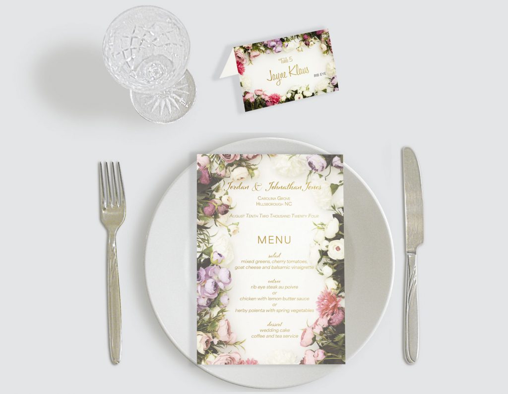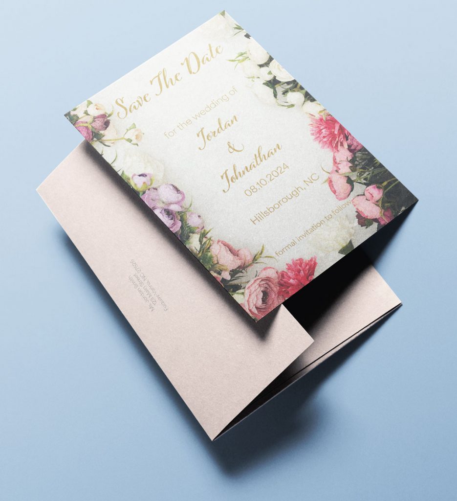 Jordan and Johnathan commissioned me to design their wedding stationery, which included save-the-date cards, invitations, RSVPs, menus, and place cards. They envisioned a floral motif with a touch of pink, aiming for a simple yet elegant aesthetic. I successfully crafted a beautiful set that perfectly captured their desired style.